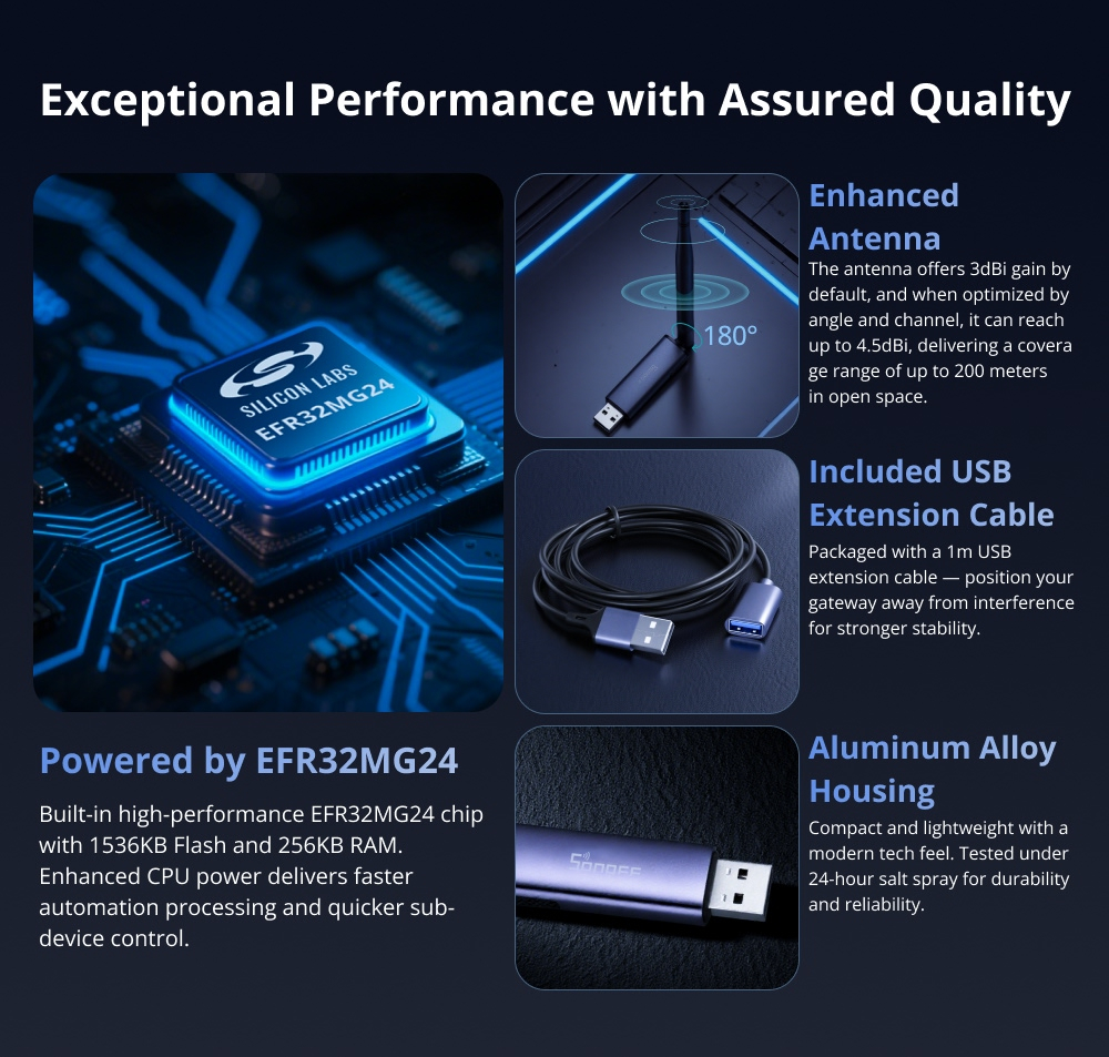 It transforms any computer, local server, or Home Assistant setup into a complete smart home hub with extended range and reliable performance.