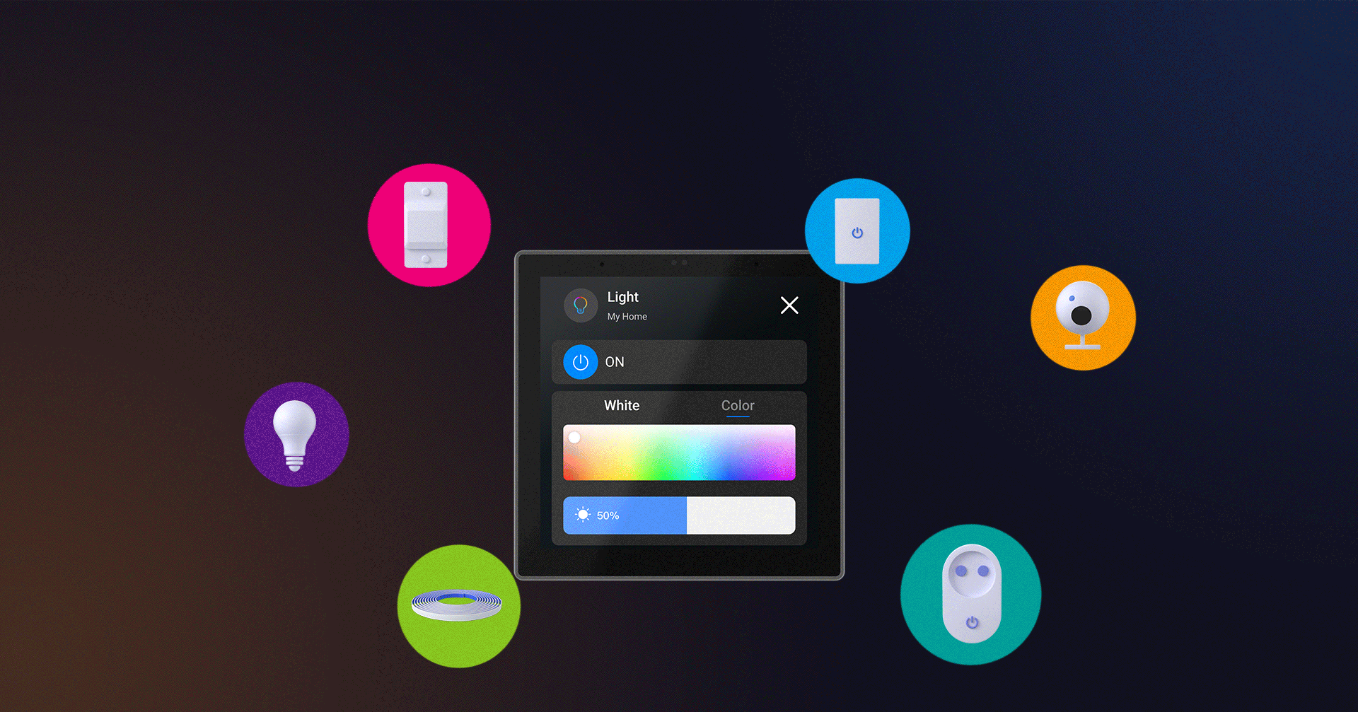 You can control smart home Wi-Fi devices (compatible with eWeLink app) from NSPanel PRO control panel from up to 3 screens of NSPanel Pro: you can see the on/off status and also turn them on/off from NSPanel Pro , or see the data and status of eWeLink sensors.
