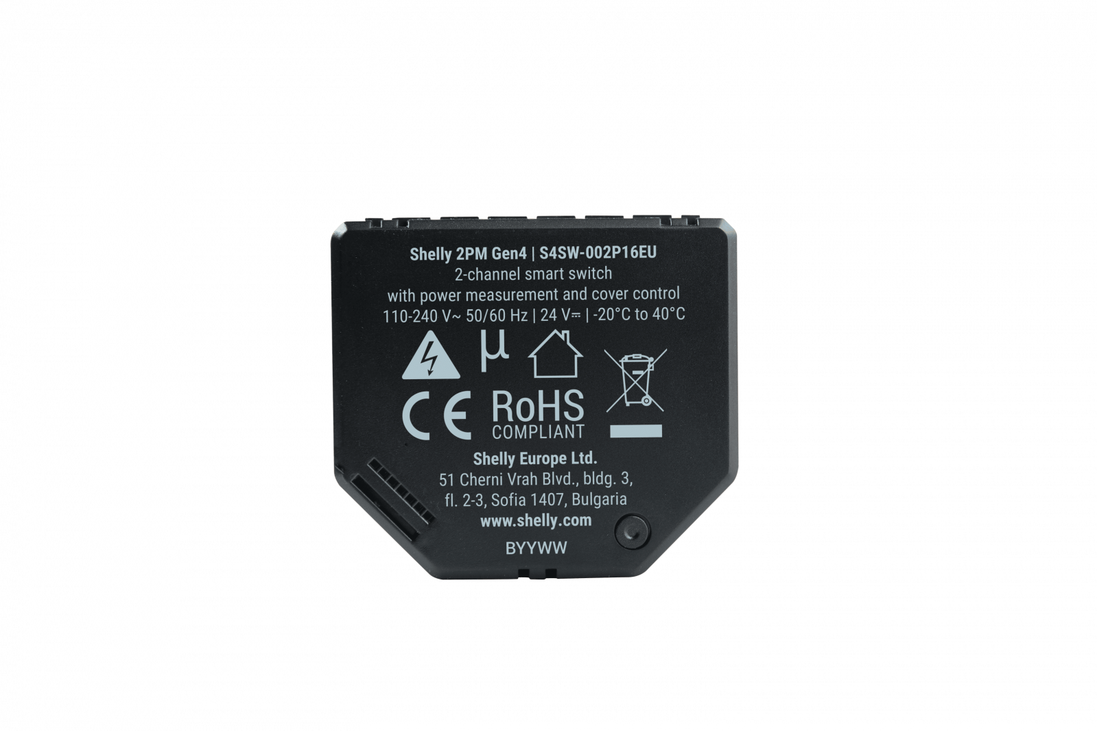 Shelly 2PM Gen4 este un releu inteligent cu două canale, dotat cu funcție de contorizare a consumului pe fiecare canal și control pentru jaluzele sau motoare bidirecționale. Ideal pentru controlul luminilor sau al rulourilor, de oriunde te-ai afla. Dimensiunea compactă îl face potrivit pentru montaj în doze de perete, prize sau întrerupătoare standard.